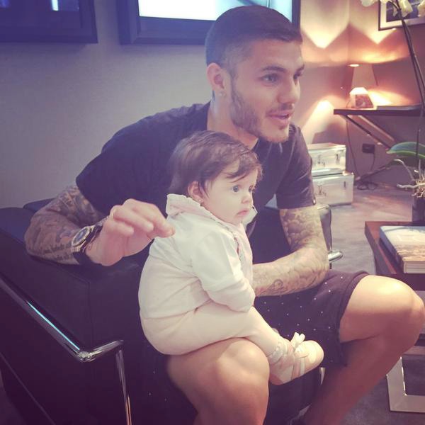 | Hai cha con tiền đạo Mauro Icardi không rời mắt khỏi TV. |