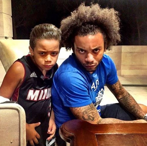 | Hai bố con Marcelo hài hước chụp hình. |