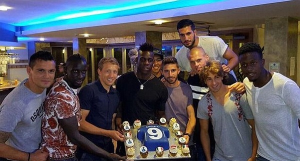 | Balotelli bước sang tuổi 25 bằng bữa tiệc sinh nhật vui vẻ bên các đồng đội tại Liverpool. |