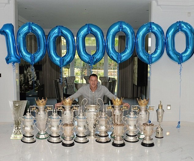 | John Terry chụp ảnh bên 15 chiếc Cup, đánh dấu sự kiện Instagram cá nhân đạt 1 triệu người theo dõi. |