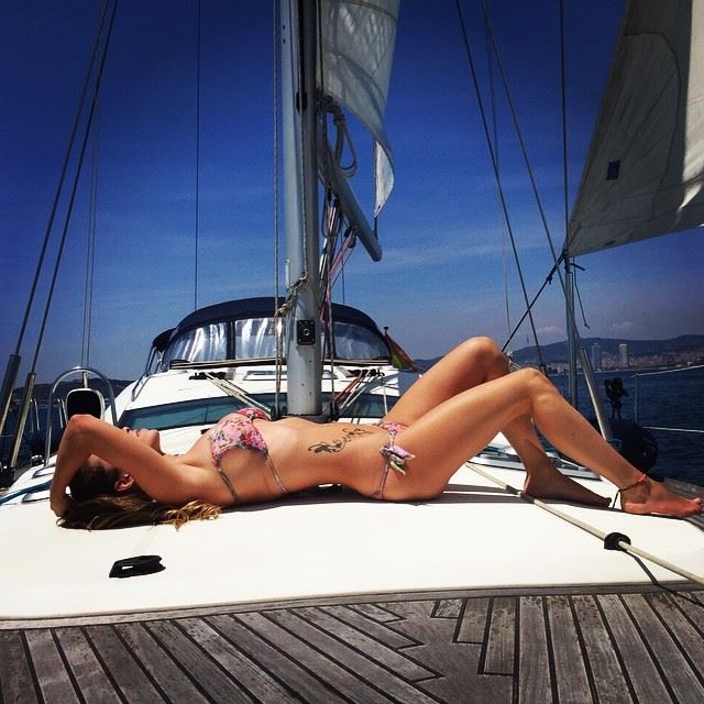 | Bà xã của Ivan Rakitic nằm dài khoe đường cong trên du thuyền. |
