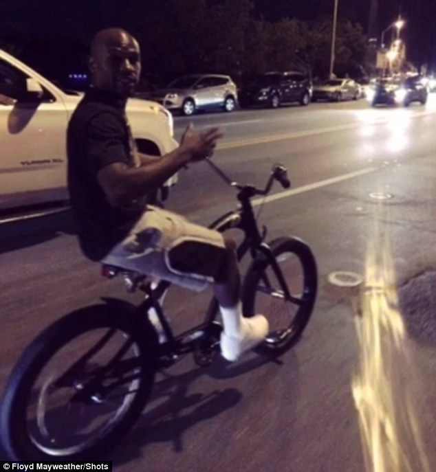 | Tay đấm Mayweather vi vu dạo phố bằng xe đạp. |