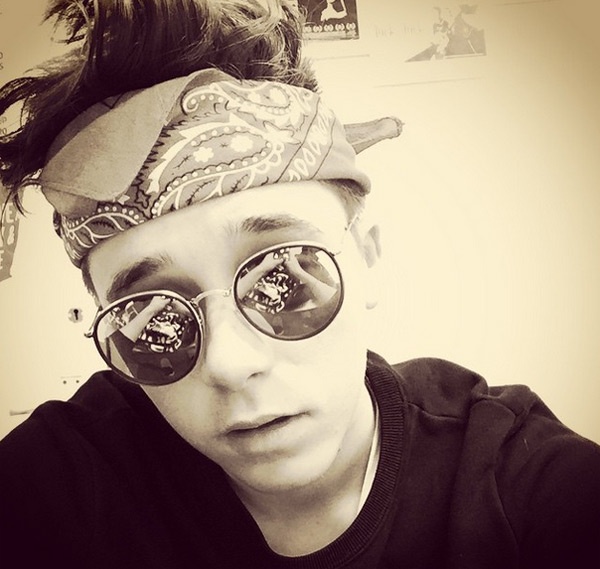| Cậu cả nhà Becks, Brooklyn sành điệu với kính đen và khăn quấn trên đầu. |