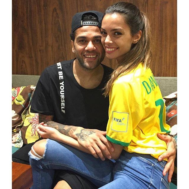 | Dani Alves tình tứ bên cô bạn gái siêu mẫu. |