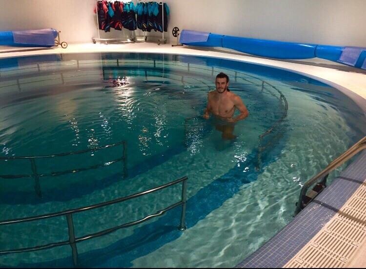 | Bale thư thái chụp ảnh một mình giữa bể bơi. |