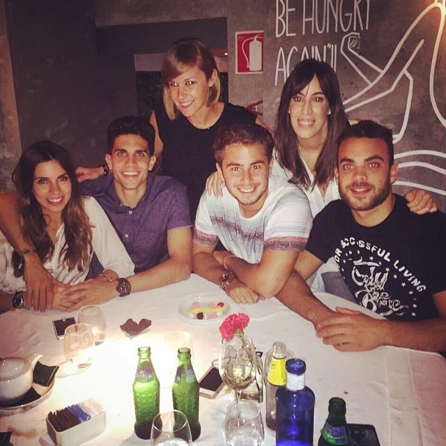 | Melissa và Marc Bartra ăn mừng chiến thắng của Barcelona trước Real Sociedad bằng bữa tiệc ấm cúng bên bạn bè. |