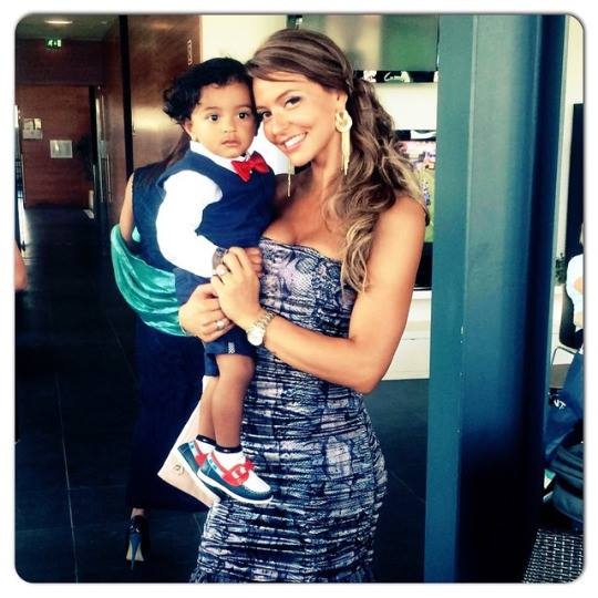 | Daniela - bạn đời của tiền vệ Nani (Sporting) xinh đẹp bên con trai Lucas. |