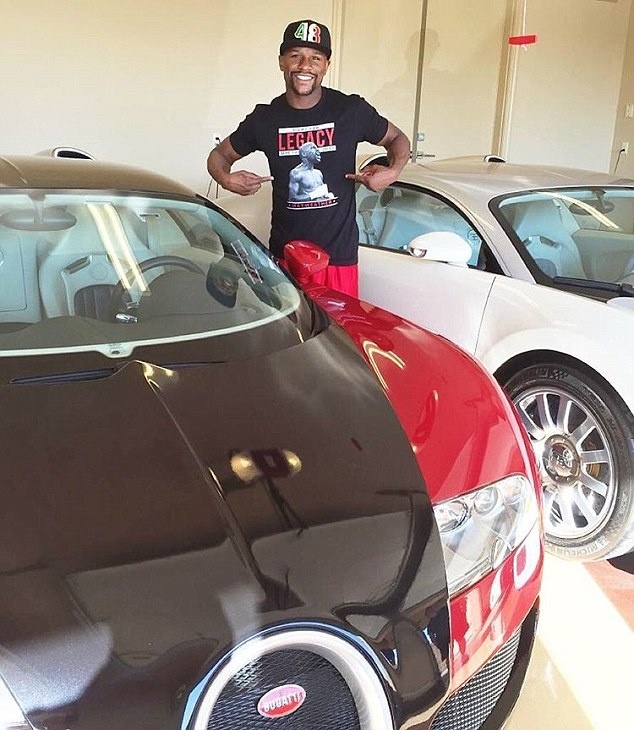 | Mayweather mặc áo có in slogan tự nhận mình là huyền thoại trước trận đấu cuối cùng trong sự nghiệp. |