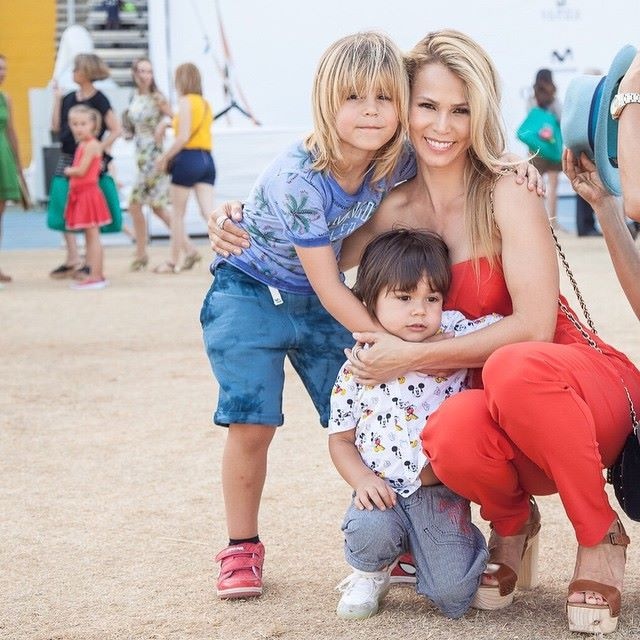 Yolanda - vợ Valdes xúng xính đưa 2 con đi dạo phố trong một ngày đẹp trời. |