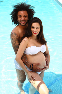 | Marcelo và bà bầu gợi cảm tình tứ trên bể bơi. |