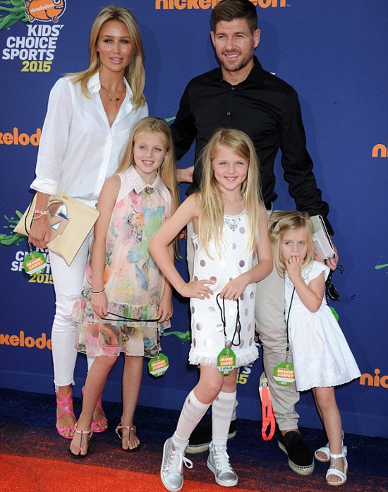 | Vợ chồng Gerrard cũng xúng xính dẫn 3 công chúa nhỏ Lilly Ella, Lexie và Lourdes tới dự lễ trao giải. |