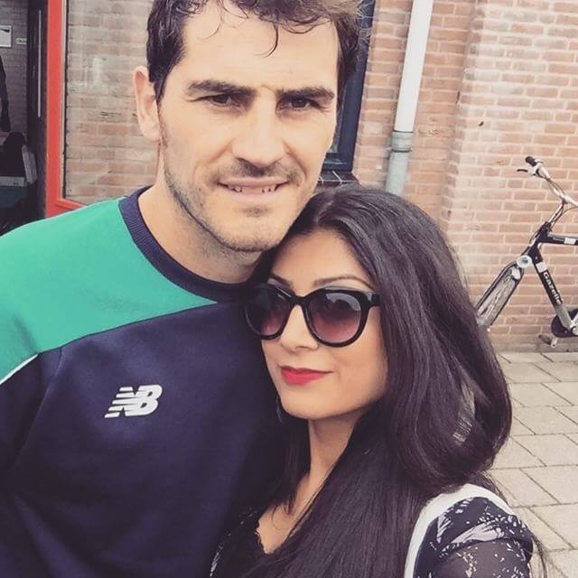 | Thủ thành Iker Casillas chụp hình cùng một người hâm mộ trong màu áo Porto. |