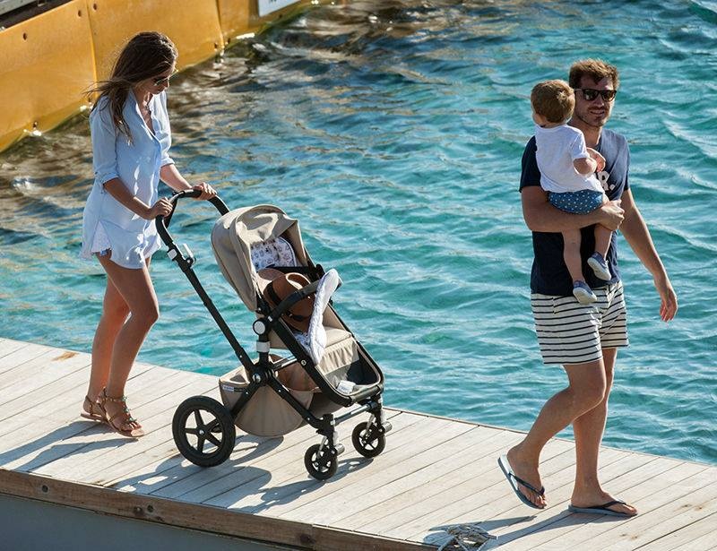 | Iker Casillas đang tận hưởng kỳ nghỉ hè bên gia đình trước khi quay trở lại Bồ Đào Nha hội quân cùng đội bóng mới Porto. Cựu thủ môn Real Madrid bế bé Martin đi trước trong khi Sara Carbonero thong dong đẩy xe phía sau. |