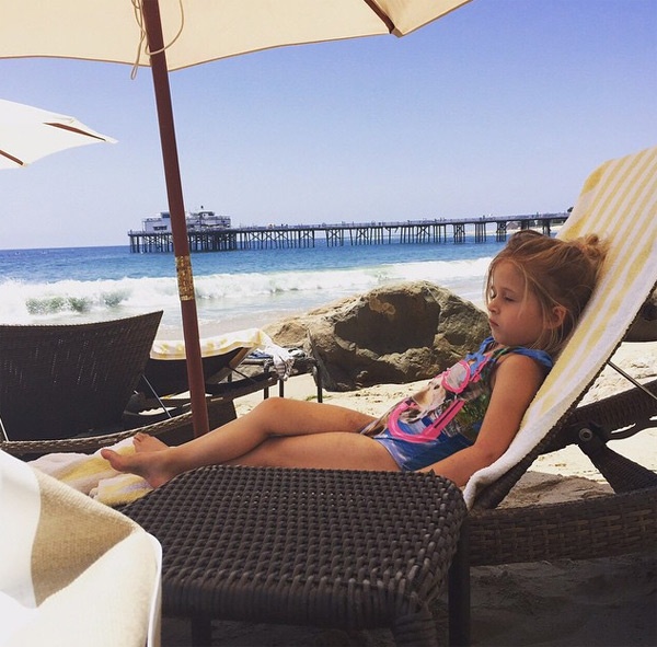 | Gerrard chia sẻ khoảnh khắc cô con gái yêu nằm ngủ ngon lành trên bãi biển. |