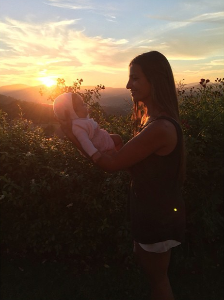 | Khoảnh khắc hạnh phúc của mẹ cọn Iria (vợ Lopez) và bé Bianca dưới ánh hoàng hôn. |