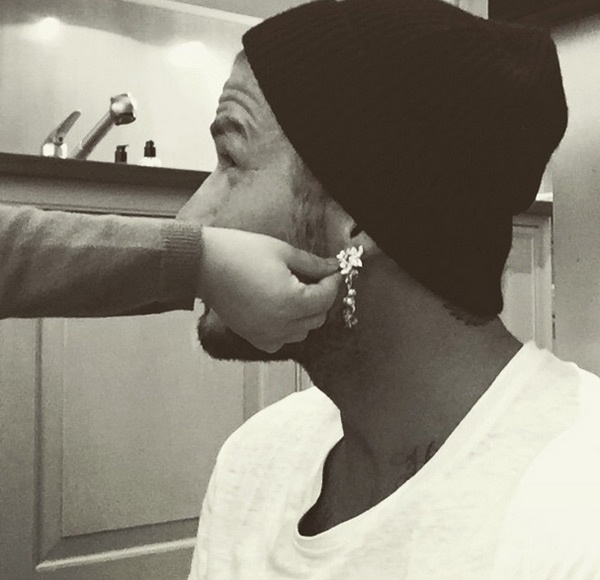 | Harper Beckham tinh nghịch thử hoa tai cho bố Becks. "Harper không phải công chúa duy nhất trong nhà" - ông bố 4 con dí dỏm chia sẻ cùng bức ảnh. |