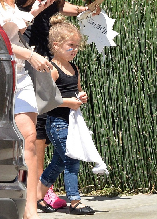 | Harper Beckham sau khi biểu diễn khiêu vũ ở West Hollywood đã được bố mẹ và 3 anh trai đi cổ vũ, tặng hoa và quà. |