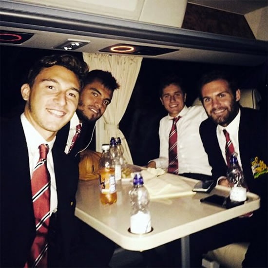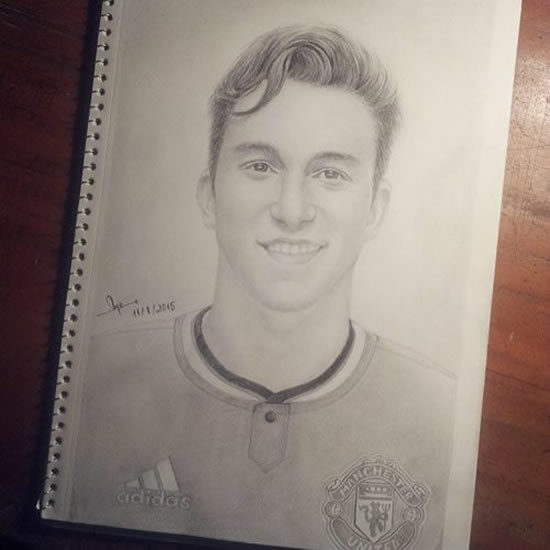 | Tân binh M.U Matteo Darmian thích thú khoe bức chân dung bằng bút chì của một fan nữ người Việt tên Vy vẽ tặng. |