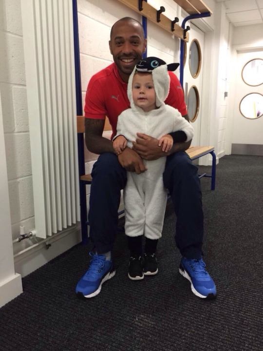 | Huyền thoại Arsenal Thierry Henry chụp hình cùng con trai của Jack Wilshere. |