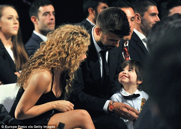 | Vợ con tới hộ tống Gerrard Pique lên nhận giải Cầu thủ xuất sắc xứ Catalan. |