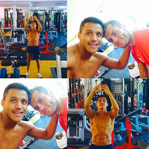 | Sanchez khoe bụng 6 múi trong phòng tập gym. |