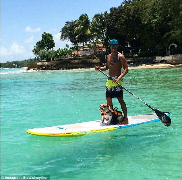 | Tay đua F1 Lewis Hamilton đang tận hưởng kỳ nghỉ hè sôi động tại Barbados. "Bạn gái tin đồn" của Hamilton là Rohanna cũng có mặt tại đây. |
