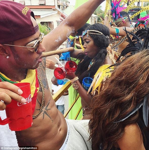 | Hình ảnh Hamilton cởi trần phì phèo điếu thuốc và nhảy múa, quậy phá tại lễ hội carnival Barbados khiến người hâm mộ ít nhiều phiền lòng. |