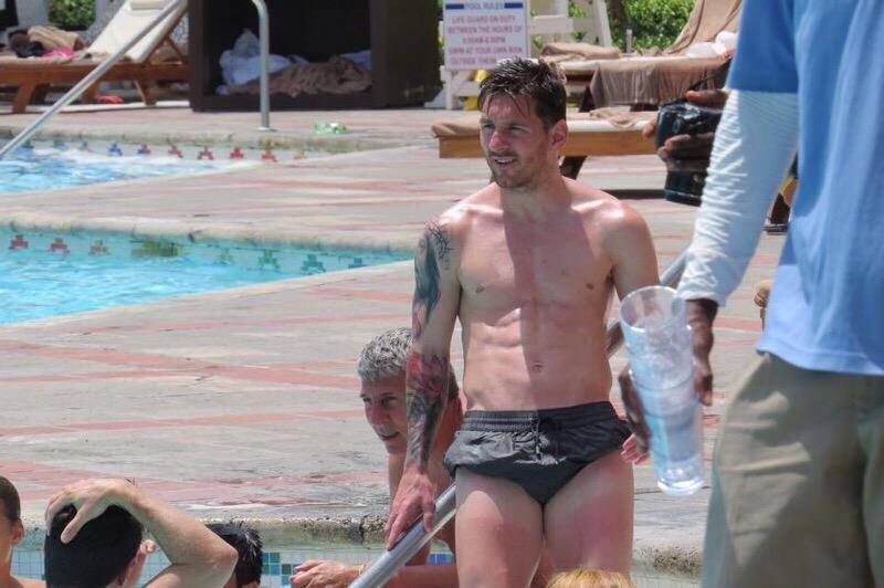 | Ngôi sao người Argentina đang tận hưởng những ngày hè cuối cùng bên gia đình tại Caribbean. Mới đây, anh khoe thân hình rắn rỏi cùng những hình xăm ấn tượng tại bể bơi. |