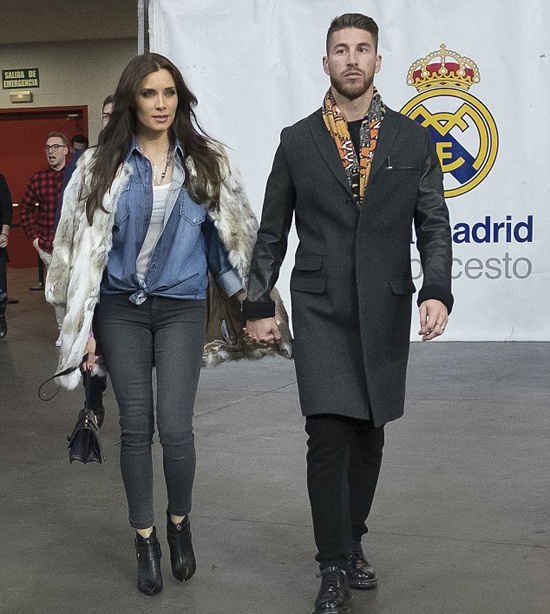 | Sergio Ramos tung tăng nắm tay "bồ già" tới sân bóng rổ tại Tây Ban Nha. |