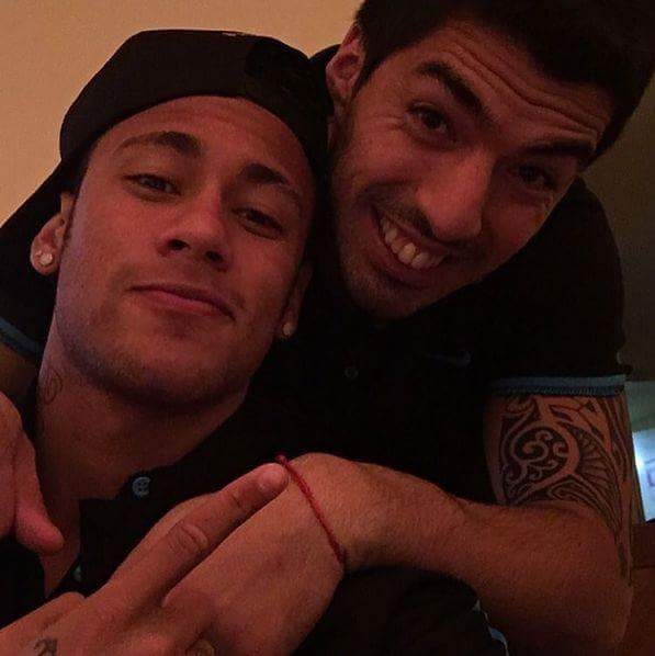 | Neymar phấn khích chia sẻ bức ảnh chụp cùng đồng đội Suarez: "Chiến thắng tuyệt vời của toàn đội. Làm tốt lắm anh bạn béo. Hat-trick. Yêu anh, người anh em". |