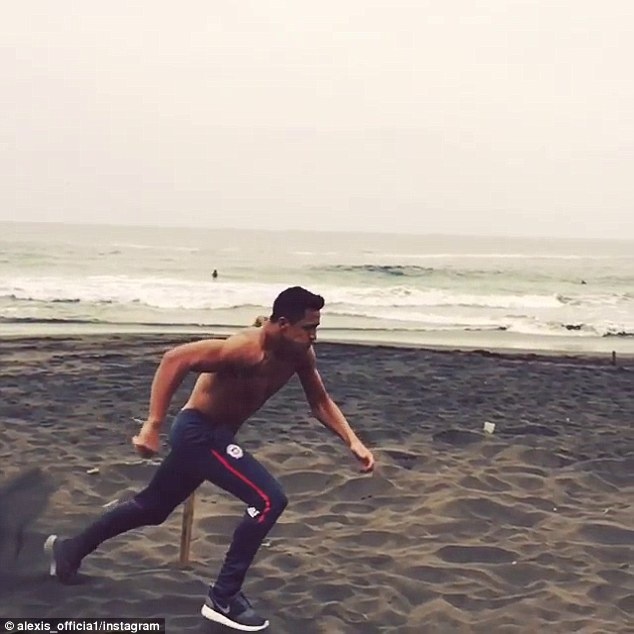 | Ngôi sao người Chile Sanchez miệt mài luyện tập trên bãi biển dù đang trong kỳ nghỉ hè. |