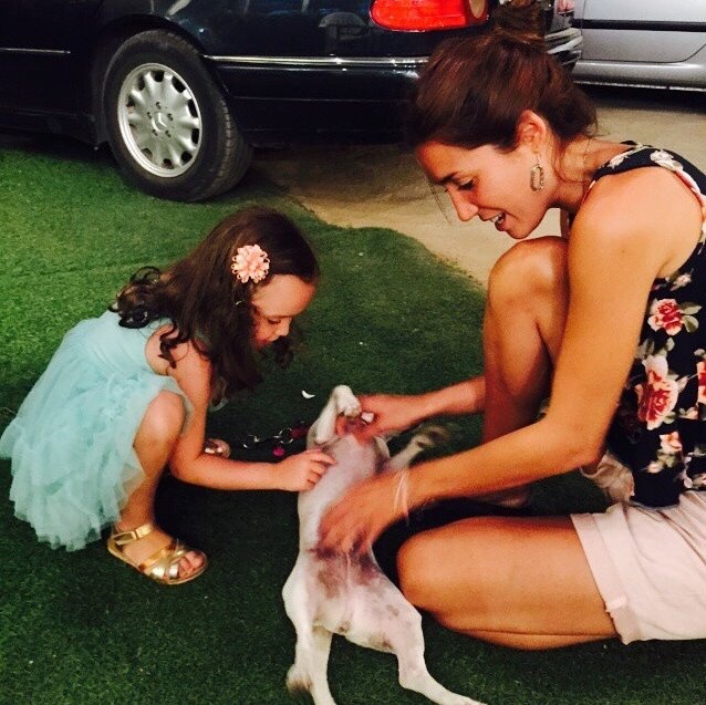 | Iniesta chia sẻ khoảnh khắc bình yên bên vợ con cùng chú cún cưng. |