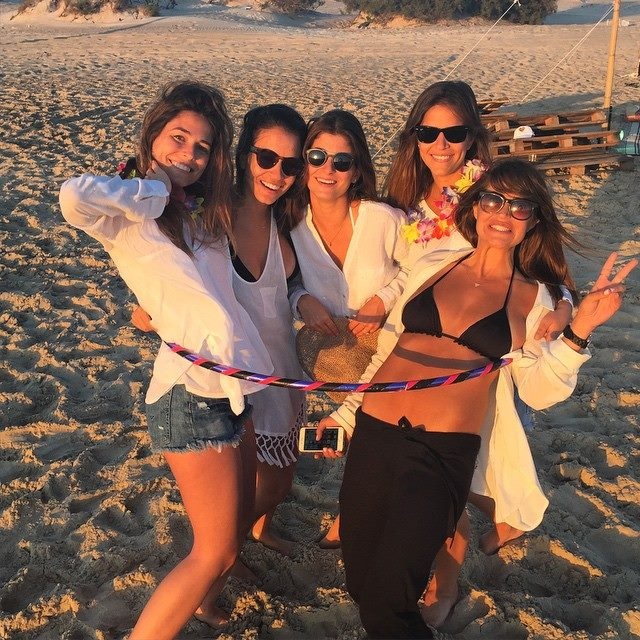 | Bạn gái Sergi Roberto - Coral Simanovich (ngoài cùng bên trái) vui vẻ cùng bạn bè trên bãi biển. |