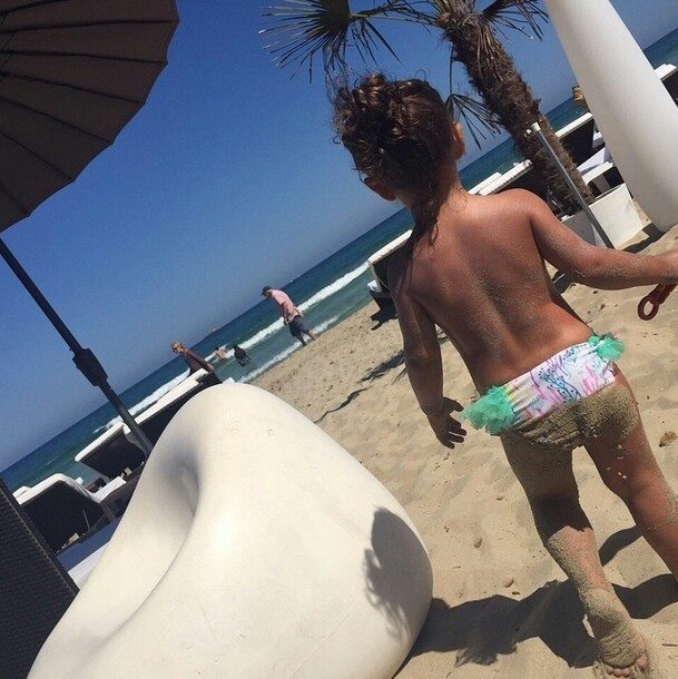 | Bé Lia - con gái Fabregas đáng yêu trên bãi cát trong kỳ nghỉ hè cùng mẹ. |