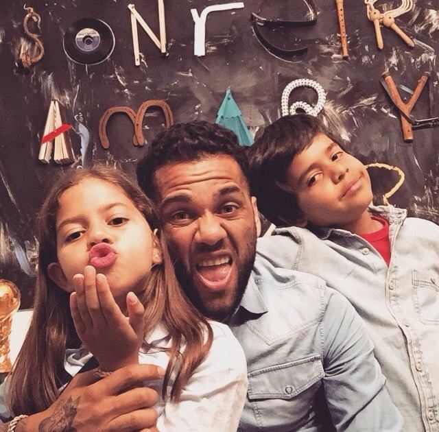 | Dani Alves đánh dấu sự kiện Instagram đạt 5.000.000 người theo dõi bằng bức hình chụp cùng 2 con. |