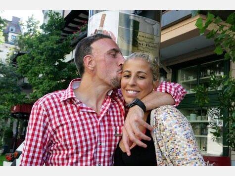 | "Gã mặt sẹo" Ribery thể hiện tình cảm với vợ yêu Wahiba. |