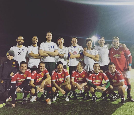 | David Beckham hào hứng cùng con trai tham gia một trận bóng từ thiện. |