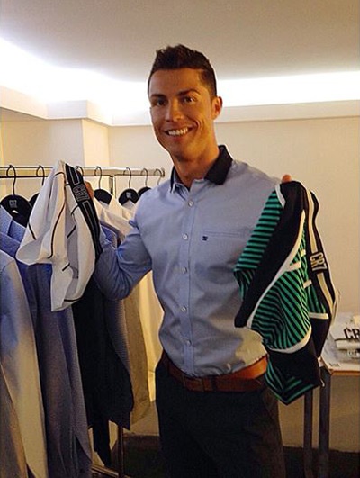 | "Nên chọn cái nào?", Ronaldo giơ 2 chiếc quần thương hiệu CR7 và nhờ người hâm mộ chọn giúp. |