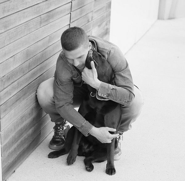 | Podolski ôm và gọi chú chó cưng là "tình yêu thật sự". |