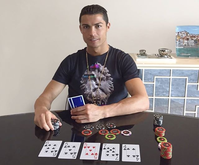 | "Vui vì bốc được quân bài ưng ý", Ronaldo khoe ván bài poker mình đang chơi lên Instagram. Anh vừa lập hat-trick trong trận thắng 3-2 của Real trước Sevilla. Ngôi sao người Bồ Đào Nha đang có tâm trạng khá vui vẻ trước khi bước vào trận bán kết lượt đi Champions League. |