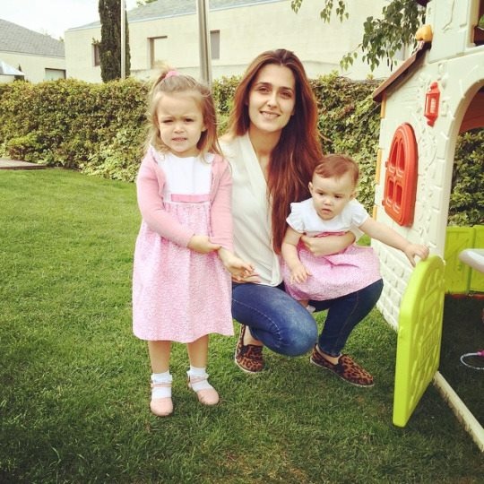 | Ana Sofia - bà xã của Pepe dịu dàng bên 2 nàng công chúa nhỏ. |