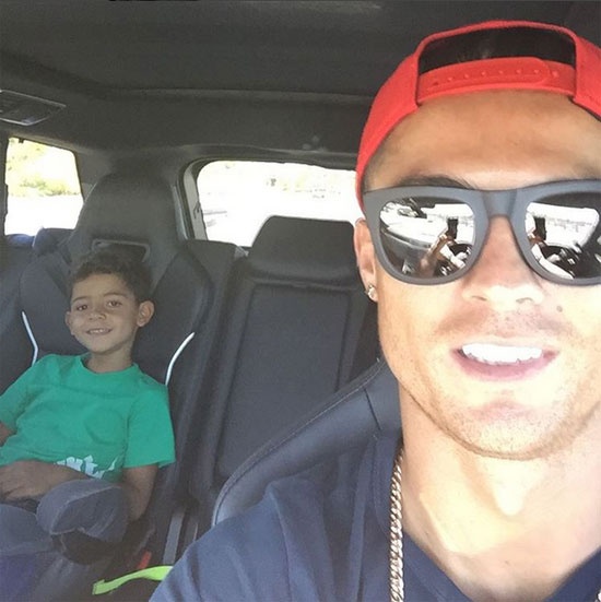 | Ronaldo vui vẻ đưa đón con trai tới trường. |