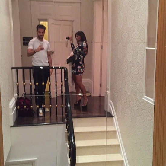 | Febregas mải mê selfile không hay biết cô bồ gợi cảm Daniella Secman đang quay trộm mình. |