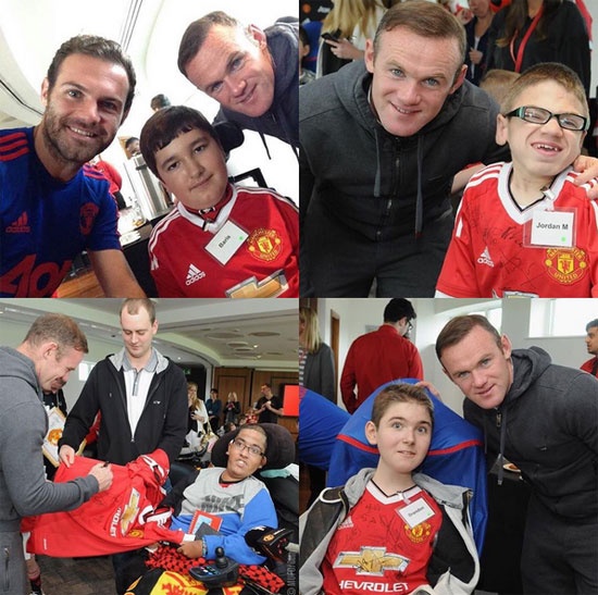 | "Một buổi chiều ý nghĩa bên các fan nhí của quỹ Manchester United Dream Day. Cảm thấy tuyệt vời khi thấy các em cười" - Rooney chia sẻ ảnh khi đang cùng đồng đội đi làm từ thiện. |
