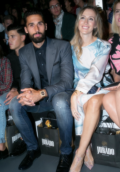 | Arbeloa và vợ trên hàng ghế đầu show thời trang Jurado. |