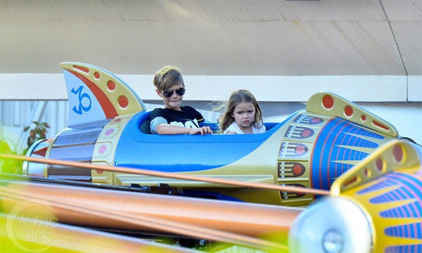 | Công chúa nhà Becks – Harper tỏ ra khá căng thẳng khi chơi tàu lượn cùng anh trai Romeo. |