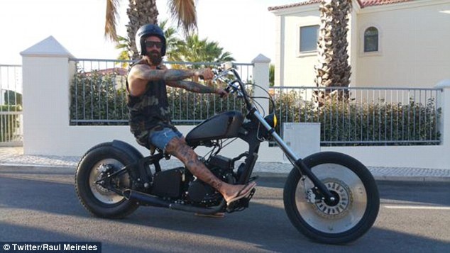 | Cựu sao Chelsea và Liverpool Raul Meireles cưỡi “ngựa sắt” dạo phố. |
