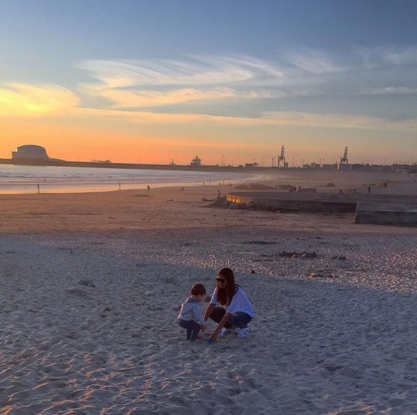 | Iker Casillas khoe ảnh bạn gái Sara và con trai đang đùa nghịch trên bãi biển tại Porto. |