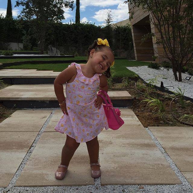 | Cô con gái Salome của James Rodriguez cũng nhí nhảnh đáng yêu trong bộ cánh màu hồng. |