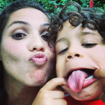 | Bé Enzo - con trai Marcelo nghịch ngợm chụp hình cùng mẹ. |